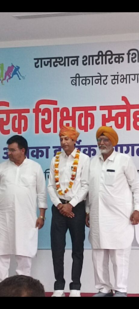 राजस्थान शारीरिक शिक्षा शिक्षक संघ द्वारा बीकानेर संभाग स्तरीय शारीरिक शिक्षा स्नेह मिलन कार्यक्रम का आयोजन जिला हनुमानगढ़ स्थित VM पब्लिक स्कूल, हनुमानगढ़ टाउन में सफलतापूर्वक संपन्न हुआ। कार्यक्रम में लगभग 200 शारीरिक शिक्षा अध्यापकों ने भाग लेकर संगठन की एकजुटता और सक्रियता का परिचय दिया।