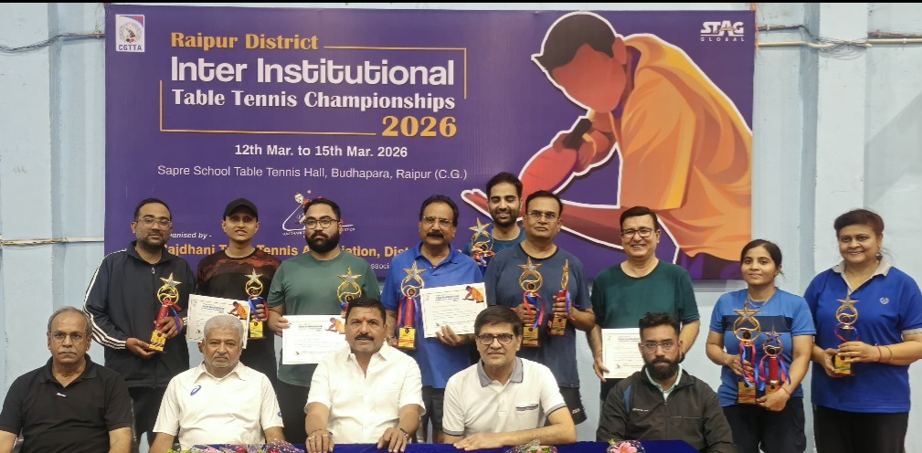 राजधानी टेबल टेनिस संघ द्वारा सप्रे शाला स्थित टेबल टेनिस हॉल में 12 से 15 मार्च तक रायपुर जिला अंतर-संस्थान टेबल टेनिस प्रतियोगिता का सफल आयोजन किया गया। इस प्रतियोगिता में जिले के शासकीय, अर्द्धशासकीय, सार्वजनिक एवं निजी संस्थानों के कर्मचारी (सेवानिवृत्त कर्मचारी सहित) और विभिन्न पेशेवर वर्ग जैसे चार्टर्ड अकाउंटेंट, डॉक्टर, वकील, पत्रकार व प्रशिक्षकों ने भाग लिया।