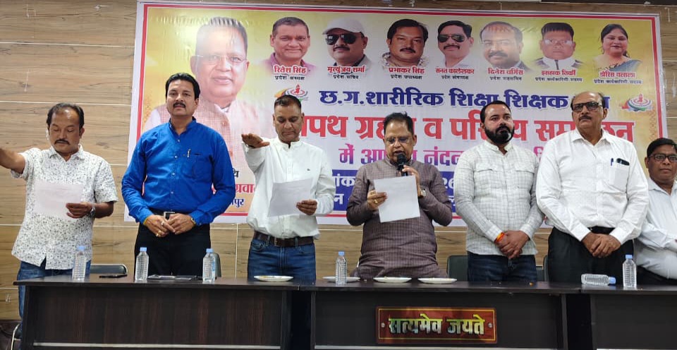 शारीरिक शिक्षा शिक्षक संघ के नव निर्वाचित पदाधिकारियों को शहर विधायक अमर अग्रवाल की मुख्य अतिथि के रूप में उपस्थिति में पद एवं संगठन के प्रति निष्ठा की शपथ दिलाई गई। इस अवसर पर संघ के अध्यक्ष रितेश सिंह, सचिव मृत्युंजय शर्मा, उपाध्यक्ष प्रभाकर सिंह, कोषाध्यक्ष सनत केलेलकर, सह सचिव दिनेश वर्गीस, कार्यकारिणी सदस्य डोरिस वात्सल्य एवं इसहाक तिर्की ने संगठन के दायित्वों को ईमानदारी से निभाने का संकल्प लिया।